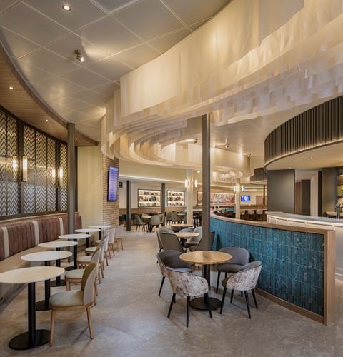 Our Liverpool Aspire Lounge offers superb comfort and beautiful décor with a range of stylish furniture settings to suit all travellers. You will find tasteful artworks detailing Liverpool’s history and a beautiful representation of the river Mersey above your head that you follow through the Aspire Lounge.