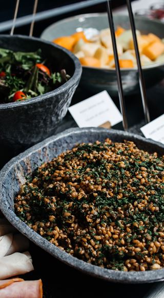 Guests can help themselves to a wide range of salads such as Farro and Brown Rice or our delicious Beet Cabbage Slaw along with deli cheeses & meats. For those looking for hot foods, we offer fresh soup, hot breakfasts and afternoon meals, all changing regularly to offer choice and variety for those travelling through the lounge frequently.